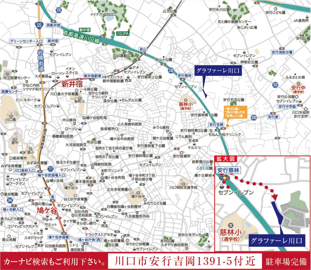 - 埼玉高速鉄道「新井宿」駅徒歩18分~20分