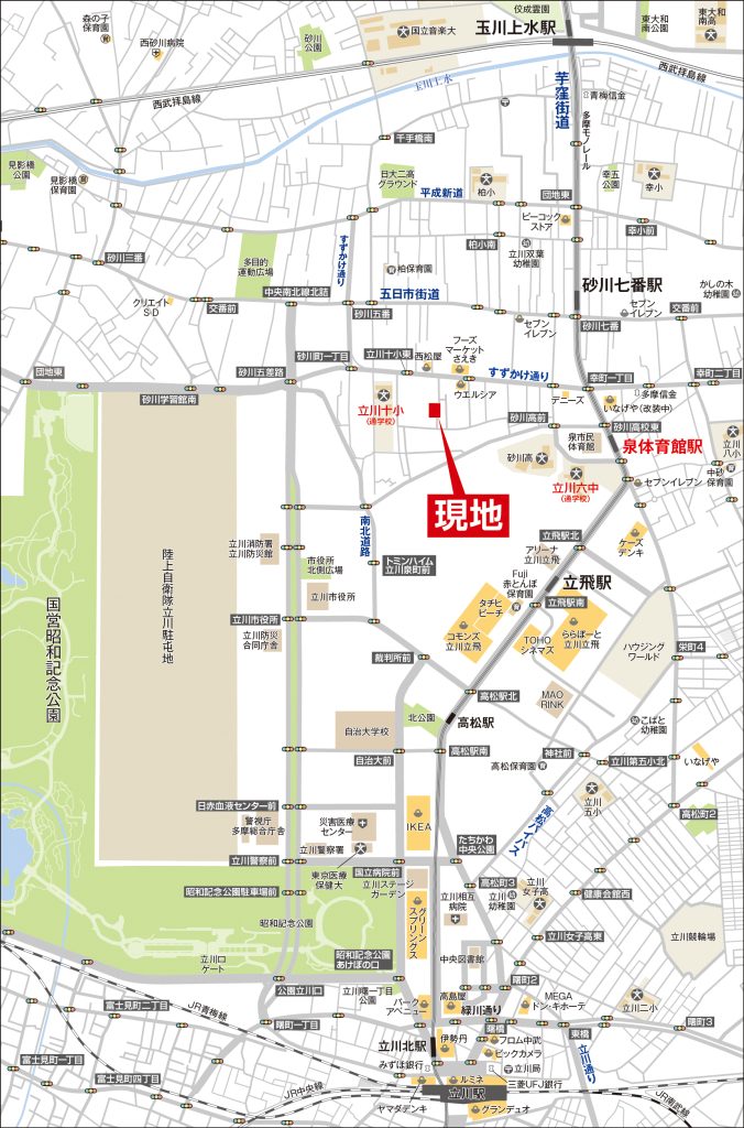 - 多摩都市モノレール「泉体育館」駅 徒歩11分、多摩都市モノレール「砂川七番」駅 徒歩12分
