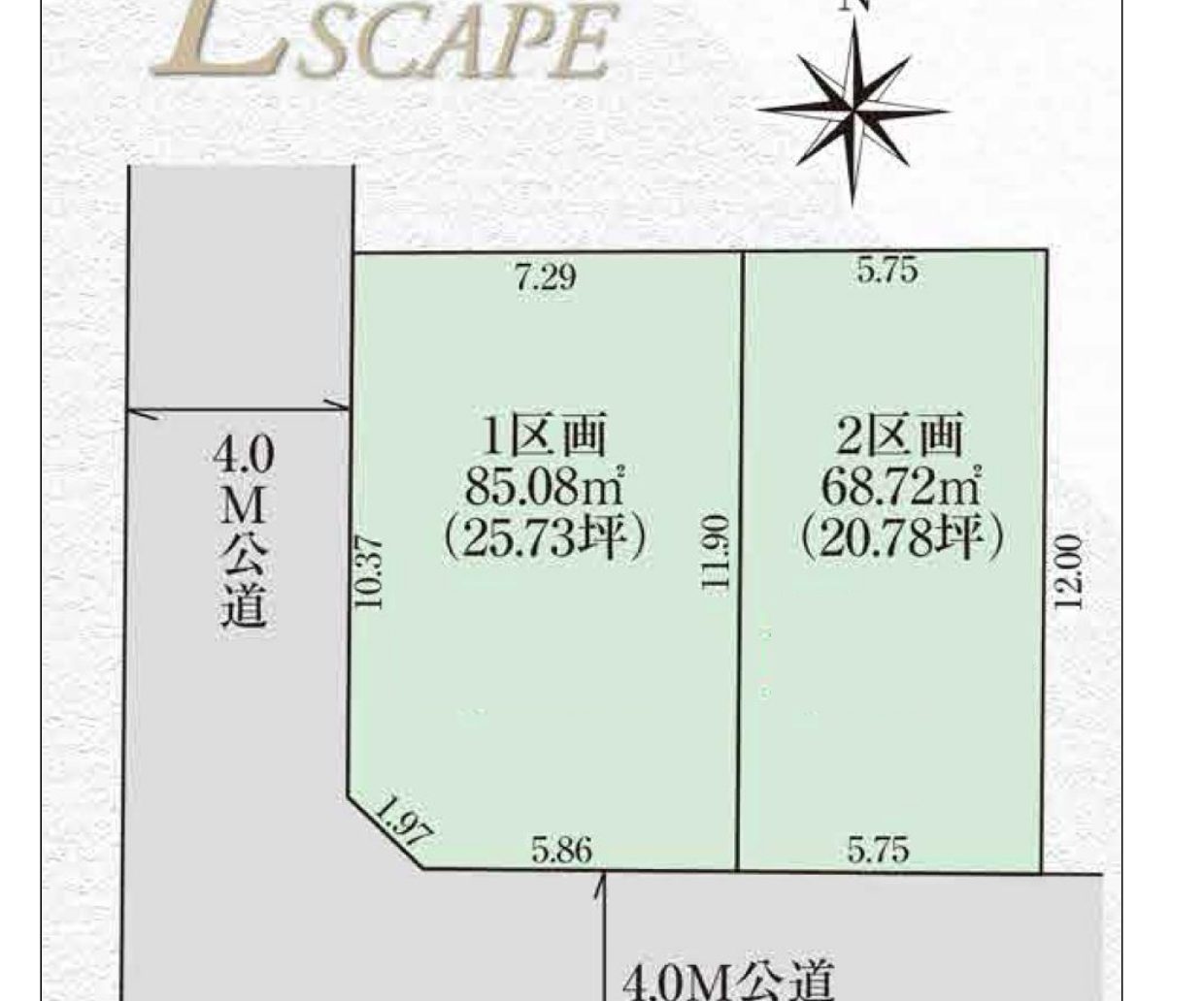 - 道路幅:4m、アスファルト舗装 私道負担なし