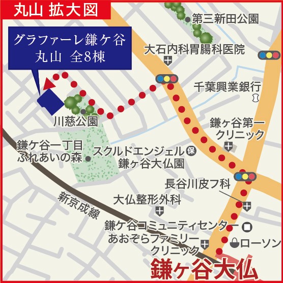 - 京成松戸線「鎌ヶ谷大仏」歩6分~7分・東武野田線「鎌ケ谷」歩18分~19分・東武野田線「新鎌ケ谷」車3.3km