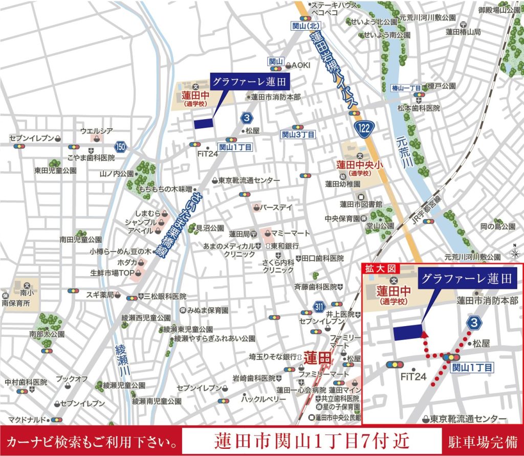 - JR宇都宮線「蓮田」歩16分~17分